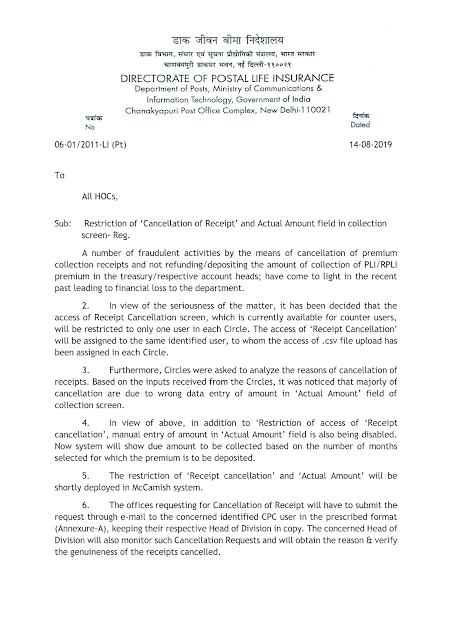 Restriction of Cancellation of Receipt and actual amount field in the collection screen in McCamish